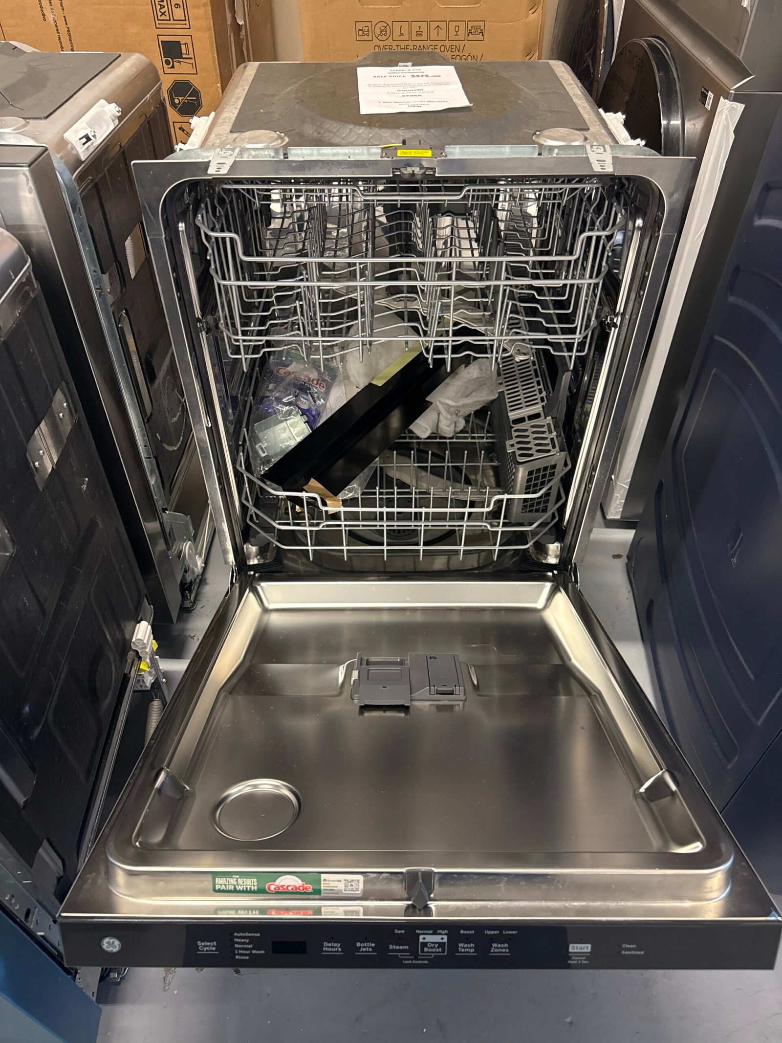 - AutoSense Cycle – This energy-saving dishwasher has an AutoSense Cycle that detects soil level and amount of dishes before automatically adjusting the wash setting for the ultimate clean.