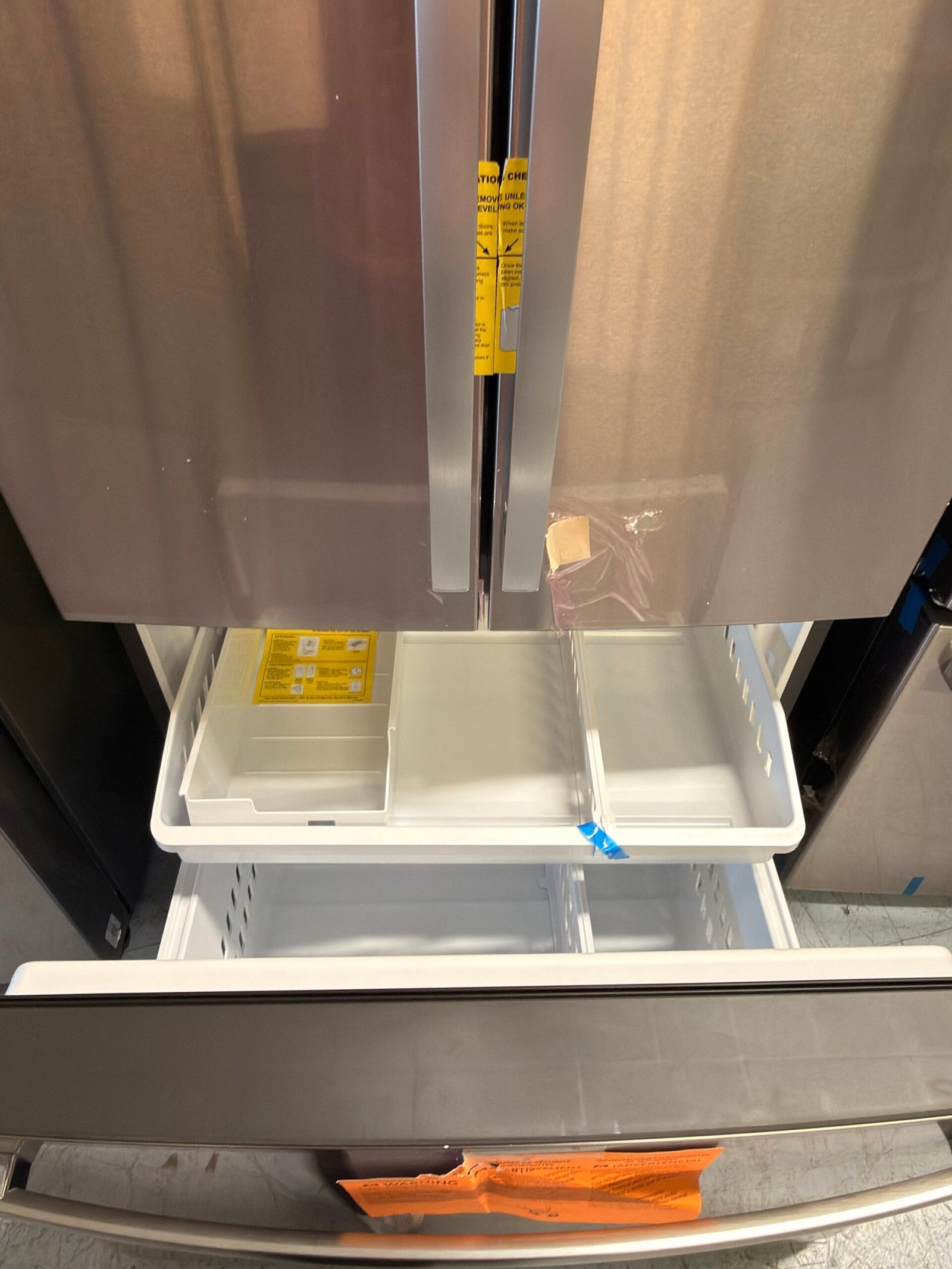 - Two humidity-controlled drawers and full-width drawer – Create the right environment for keeping fruits and vegetables fresh, while easily storing wider items like a party platter or a sheet cake