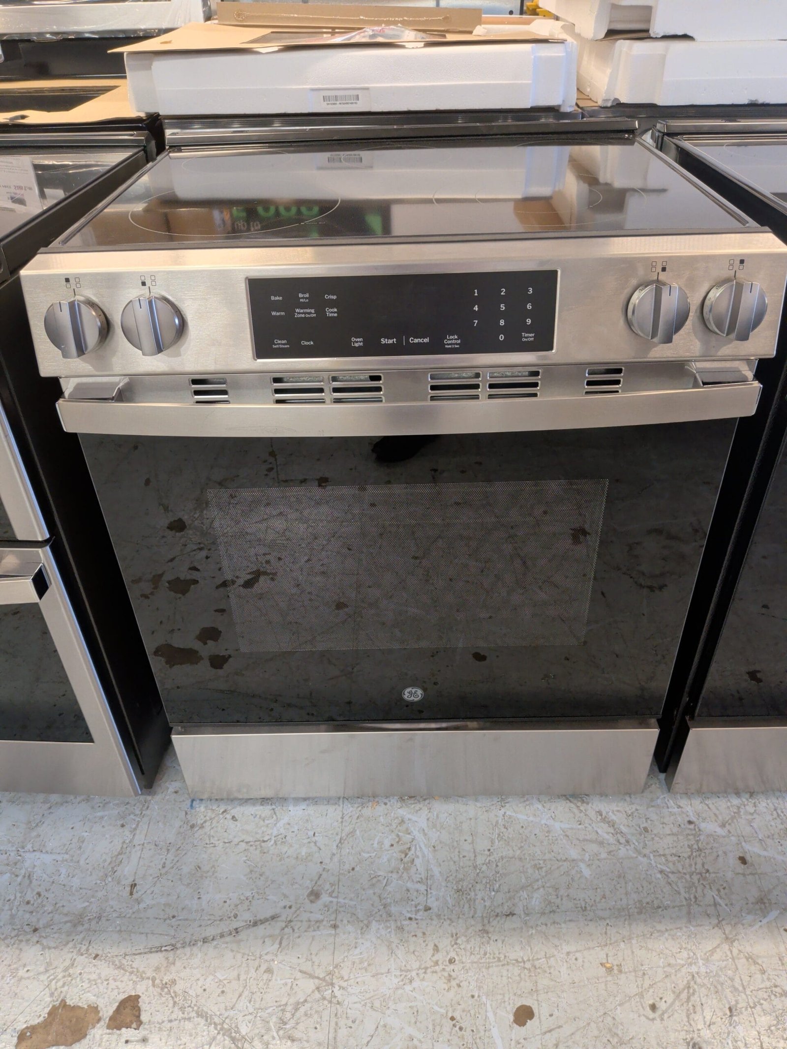 GE GRS500PVSS 5 Burner Element Slide-In Electric Range in Stainless Steel with Crisp Mode
