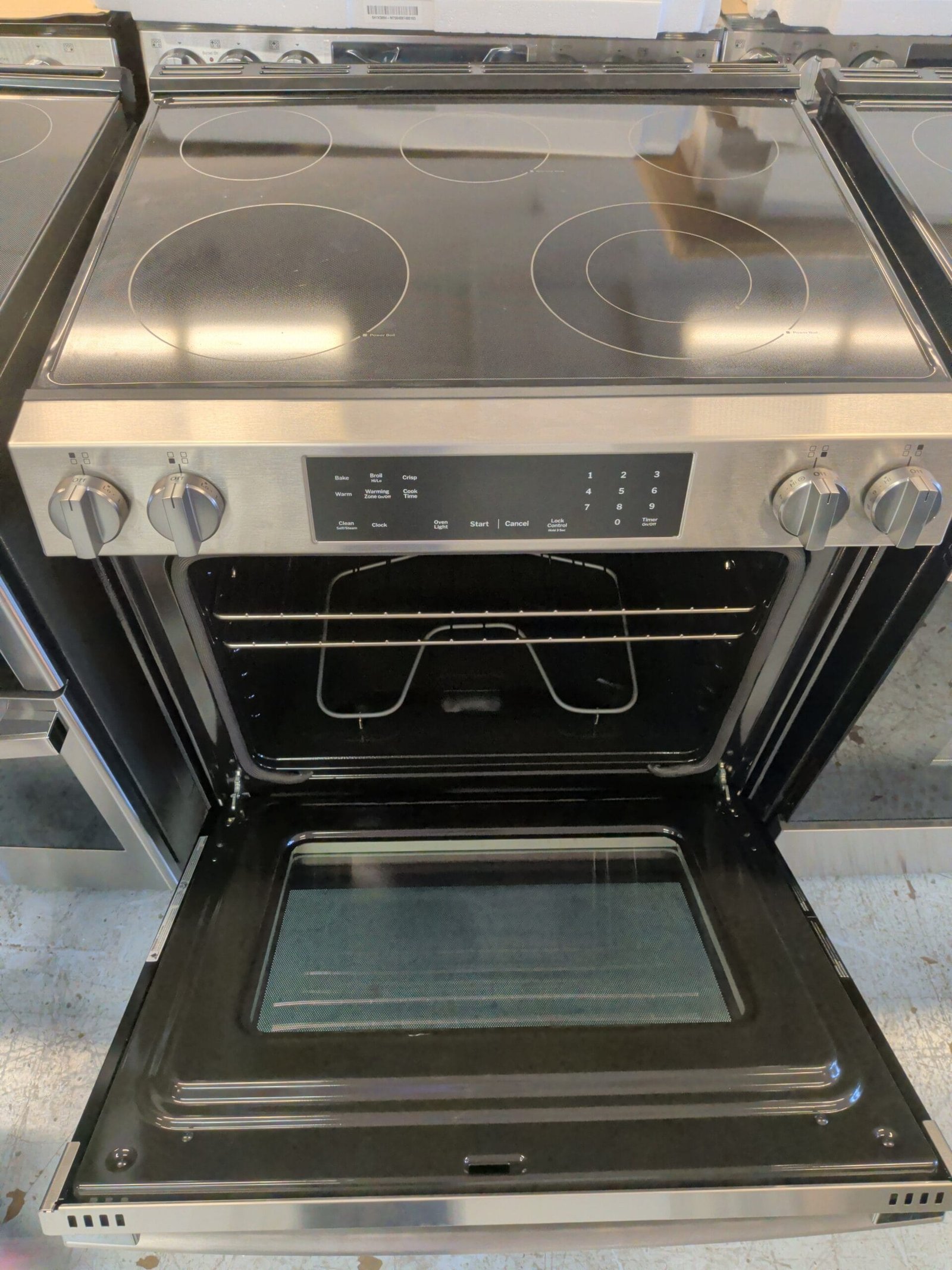 This 30-inch slide-in electric range with Crisp Mode is a strong upgrade for kitchens in the Nashville and Middle Tennessee area that want a clean built-in look, powerful radiant cooking, and air-fry–style results without a separate appliance. The 5-element smoothtop cooktop includes a 9″/6″ 3,100W Power Boil dual element, a second 9″ Power Boil element, two 6″ elements for everyday cooking, and a fifth-element warming zone to keep sides and sauces at serving temperature. Inside, the 5.3 cu. ft. oven gives you room to cook a full meal, while Crisp Mode uses the bake and broil elements with a quick preheat to deliver air-fry–like crispy results for wings, fries, and snacks; Express Preheat, dual-element baking, and self-clean with steam clean make everyday cooking and cleanup faster. A large viewing window, updated easy-to-use controls, Sabbath Mode, hot-surface indicator lights, storage drawer, and a stainless steel front with slide-in design that fits most 30-inch cutouts make this range a practical choice for remodels, new homes, and rental properties across the Nashville area.