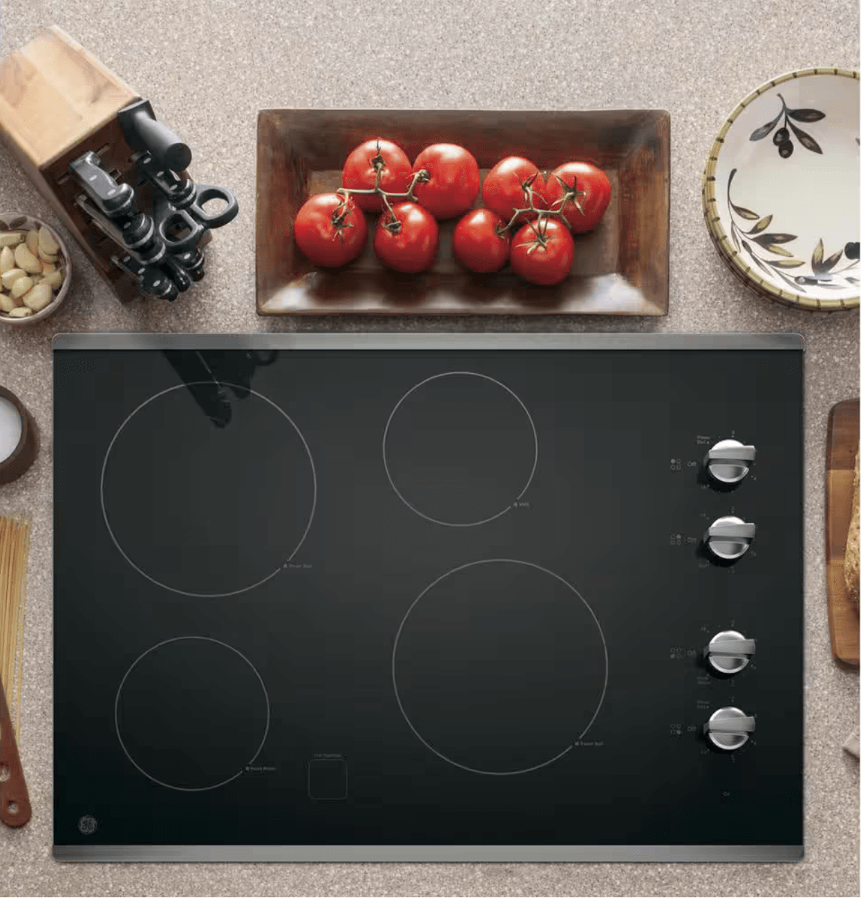- Cooktop “On” indicator light – A light lets you know when an element is active