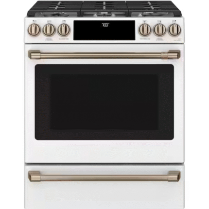 CAFE CGS700P4MW2 30 in. 5.6 cu. ft. Smart Slide-In Gas Range in Matte White with True Convection, Air Fry