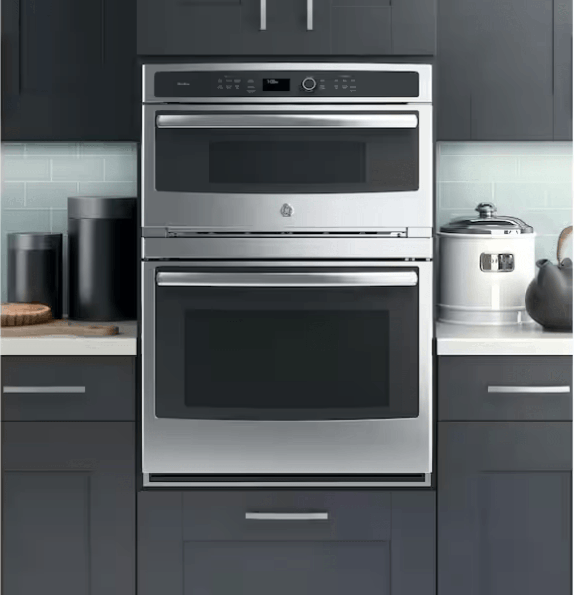 GE PT7800SHSS Profile 30 in. Double Electric Wall Oven with Convection Self-Cleaning and Built-In Microwave in Stainless Steel