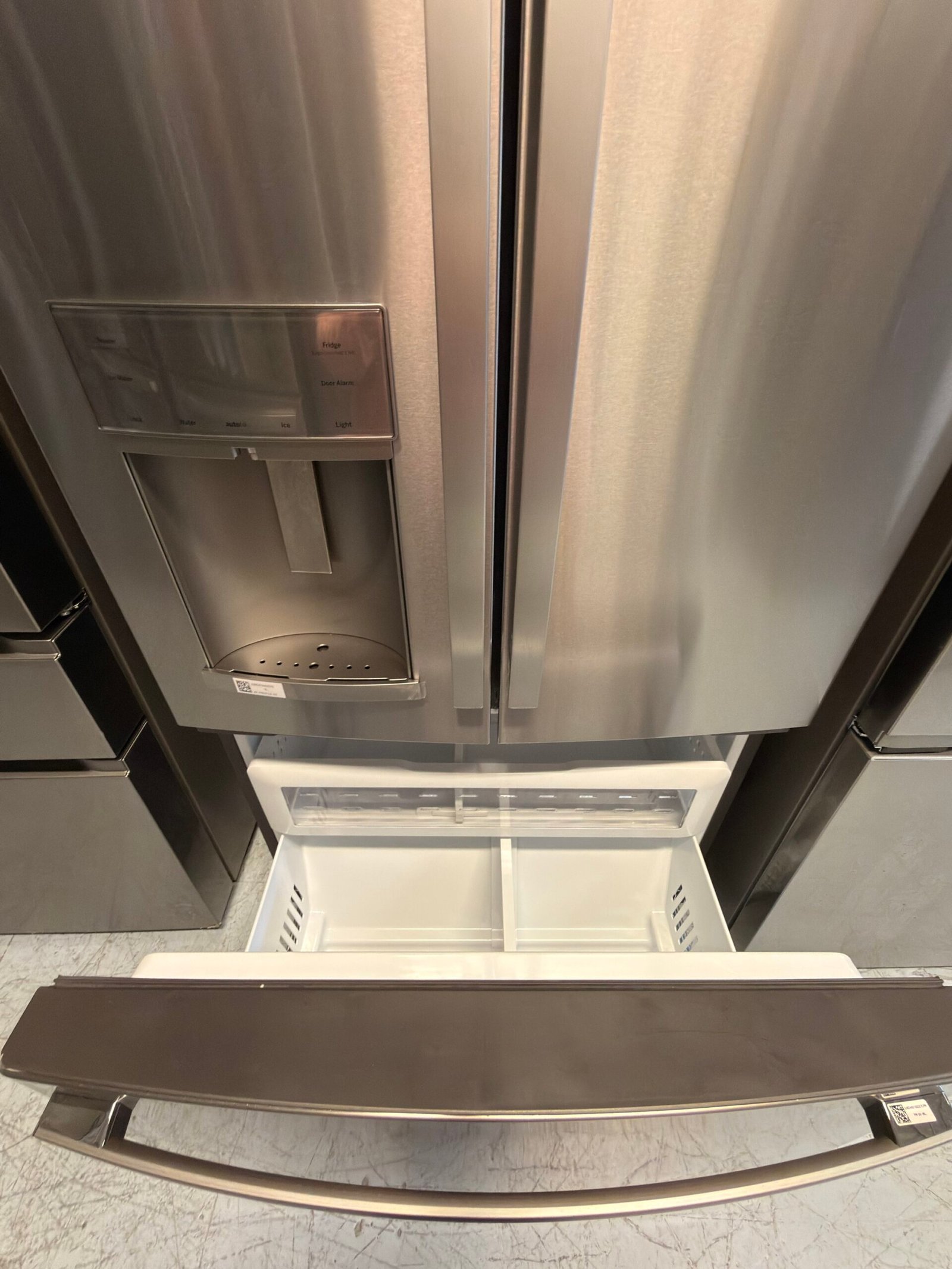 - Showcase LED lighting – Positioned throughout the interior and under fresh food doors to spotlight foods inside the refrigerator and in the freezer