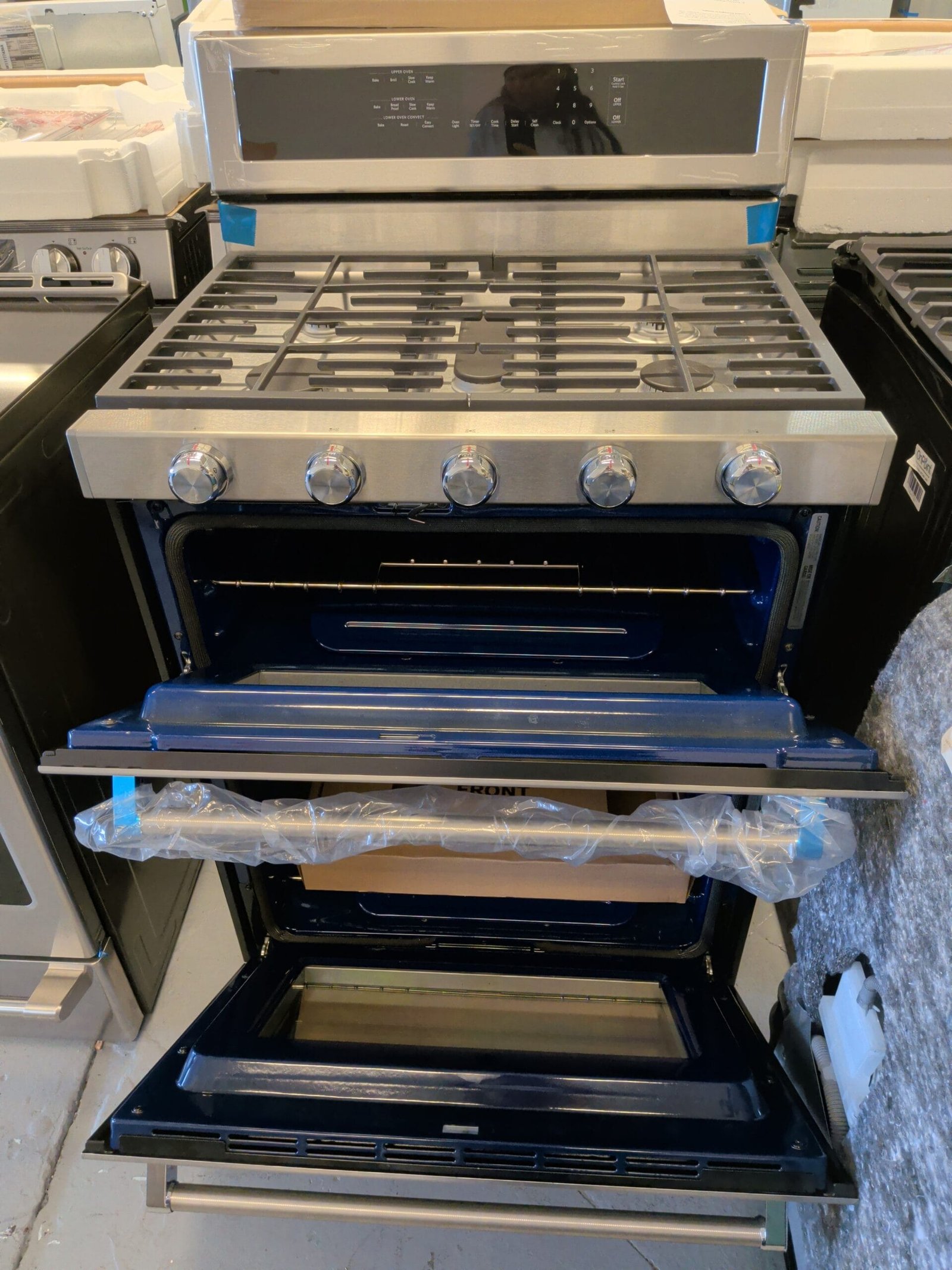 This 30-inch 5-burner gas double oven convection range is a great choice for home cooks in the Nashville and Middle Tennessee area who want restaurant-style flexibility and the ability to cook multiple dishes at once. The combined 6.0 cu. ft. capacity (2.1 cu. ft. upper oven and 3.9 cu. ft. lower oven) gives you room to bake, roast, and broil at different temperatures at the same time, perfect for family meals, holidays, and entertaining. Even-Heat True Convection with a bow-tie design helps maintain even temperatures throughout the lower oven, while the 5 sealed burners ranging from about 5,000 to 17,000 BTU provide powerful searing, fast boiling, and gentle simmering on continuous cast-iron grates. Glass touch controls, SatinGlide roll-out racks, EasyConvect conversion, hidden bake element, and a stainless steel finish with professional-style handles make this range a strong upgrade for remodeled kitchens, new homes, and higher-end rental properties across the Nashville area.