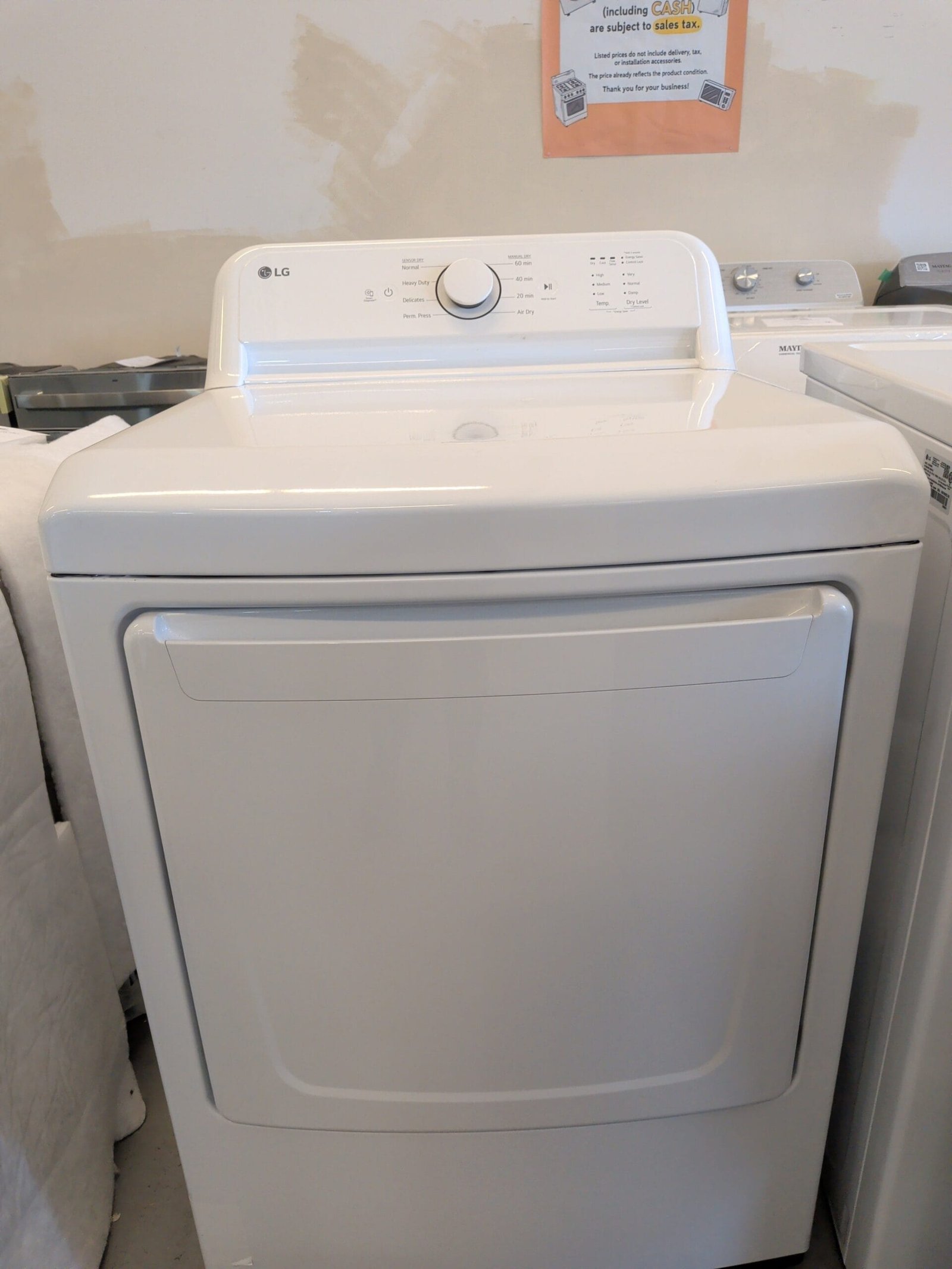 This LG 27-inch front load electric dryer in white is a practical, full-size option for homes and rental properties in the Nashville and Middle Tennessee area that want reliable drying performance and straightforward controls at a value-focused price. The generous drum capacity is designed to handle everyday family loads, towels, and bulky items, helping you run fewer cycles and keep laundry moving. Sensor-based drying on compatible configurations monitors moisture and adjusts time to help prevent overdrying, while multiple cycles and temperature settings let you choose gentler care for delicates or higher heat for heavy fabrics and work clothes. Options like Wrinkle Care or extended tumble help keep clothes from sitting in a hot drum and getting creased if you cannot unload them right away, and a bright drum light makes it easier to see small items at the back. A simple front control panel, reversible door, and the ability to pair with a matching LG front load washer (stacked or side by side) make this dryer a flexible fit for laundry closets, basements, and hallway niches across the Nashville area.