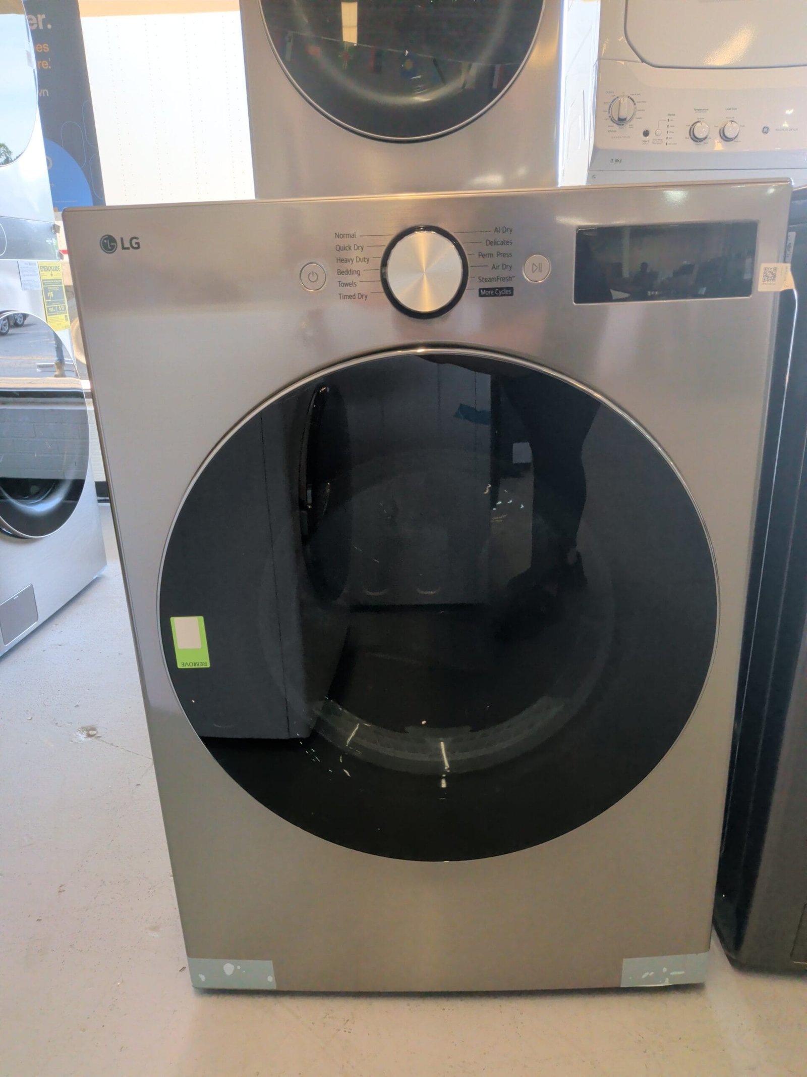 This LG 27-inch front load electric dryer in graphite-style finish is a strong option for busy laundry rooms in the Nashville and Middle Tennessee area that want large capacity, advanced fabric care, and a modern dark look that pairs well with many LG front load washers. The spacious drum is built to handle family-size loads, towels, and bulky bedding so you can run fewer cycles while still keeping up with laundry. Sensor drying technology on compatible configurations monitors moisture levels and automatically adjusts time and temperature to help prevent overdrying and protect fabrics, while multiple cycles and heat settings let you fine-tune care for everyday clothes, delicates, activewear, and heavy items. Steam features on certain setups can help refresh lightly worn garments, reduce wrinkles and odors, and make clothes easier to finish, while options like Wrinkle Care or extended tumble keep loads moving after the cycle ends if you cannot unload right away. A front-mounted control panel with clear cycle labeling, interior drum light, reversible door, and stackable compatibility with a matching LG front load washer make installation flexible in closets, hallways, and dedicated laundry rooms. For homeowners and landlords across the Nashville area looking for a full-size electric dryer with a stylish dark finish and user-friendly features, this LG model is a practical upgrade.