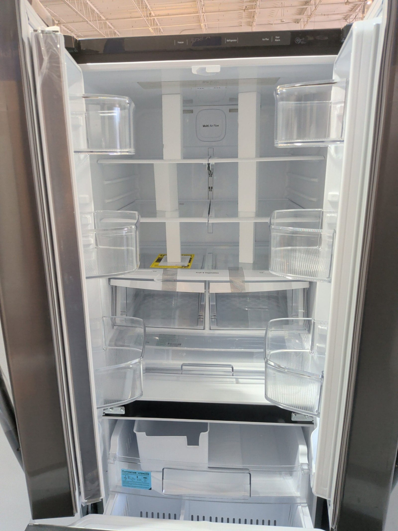 This 30-inch wide, 21.8 cu. ft. standard-depth 3-door French door refrigerator in black stainless steel is a great fit for homes and rental properties in the Nashville and Middle Tennessee area that need full-size capacity in a narrower opening without giving up modern styling. With about 14.5 cu. ft. of fresh food space and 7.3 cu. ft. of freezer capacity, the interior is laid out with adjustable SpillProtector glass shelves, two humidity-controlled crisper drawers, and a full-width Glide N’ Serve pantry drawer so you can organize produce, deli meats, snacks, and party trays. Gallon-size door bins free up shelf space by holding milk and drink containers on the doors, while the bottom freezer with a factory-installed ice maker and two-tier drawer system keeps frozen foods visible and easier to reach. LG’s Smart Cooling system with a Linear Compressor and strategically placed vents helps maintain more consistent temperatures throughout the refrigerator and freezer, keeping groceries fresher longer, and the ENERGY STAR–qualified design can help reduce utility costs compared with older fridges. Features like fingerprint- and smudge-resistant black stainless finish, electronic digital temperature controls, door alarm, bright LED interior lighting, and a standard-depth cabinet make this refrigerator a practical, good-looking upgrade for galley kitchens, townhomes, and long-term rental properties across the Nashville area