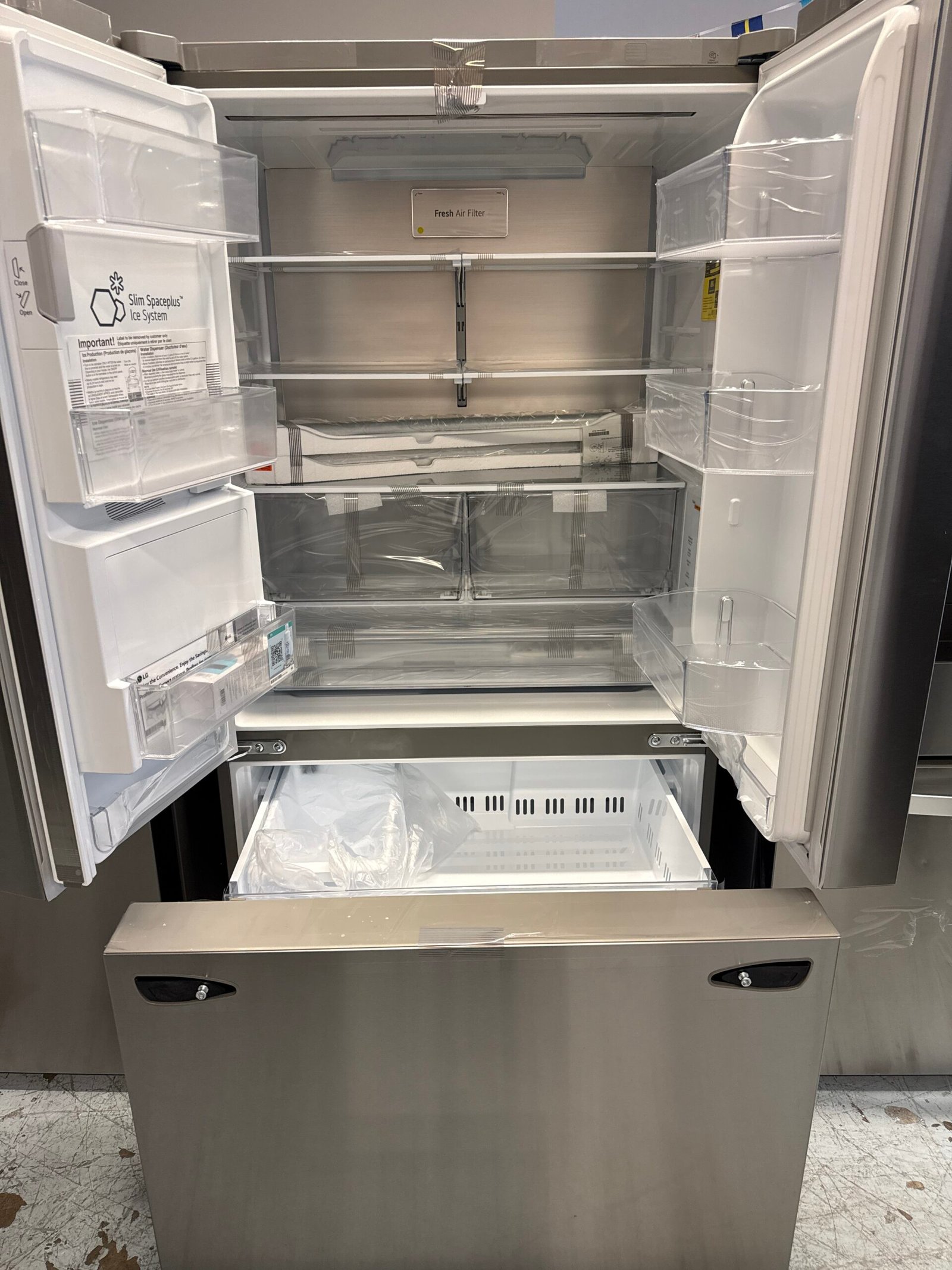 - LG Slim SpacePlus Ice System provides the most shelf space