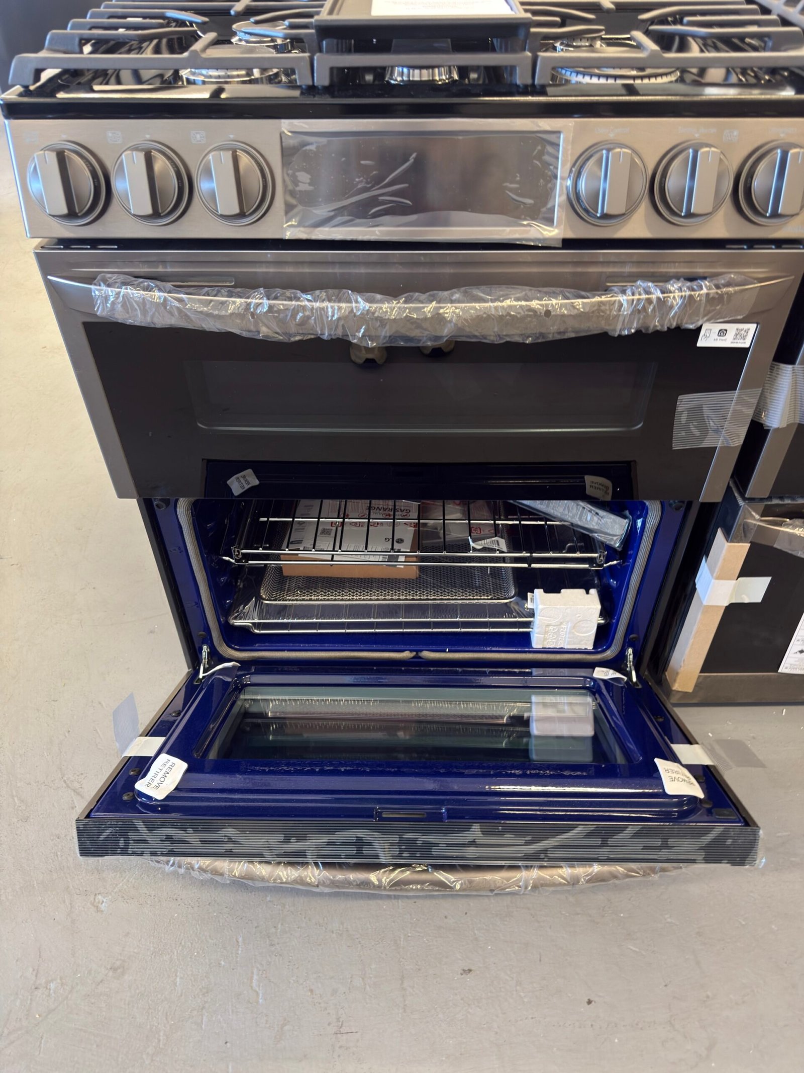 LG LTGL6937D 30 in. W 6.9 cu. ft. Smart Slide-In Double Oven Gas Range with ProBake and InstaView in Printproof Black Stainless Steel