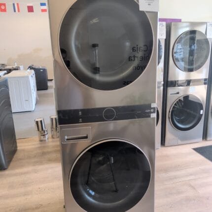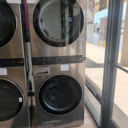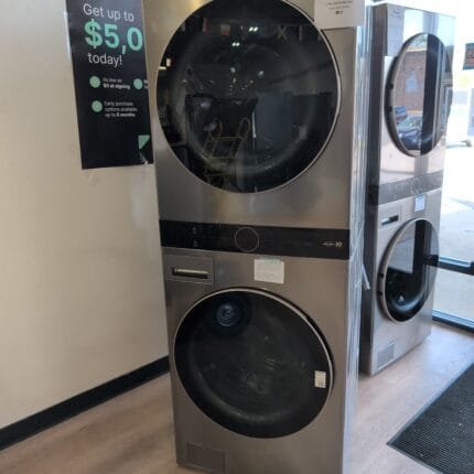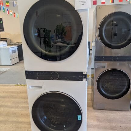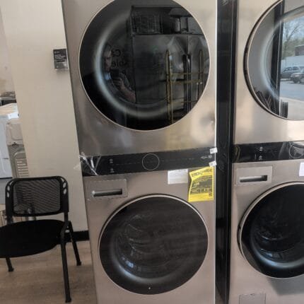 This LG 27-inch front load washer and dryer tower in white is a smart, space-saving laundry solution for homes, apartments, and rental properties in the Nashville and Middle Tennessee area that want full-size capacity in a smaller footprint. The stacked single-unit design combines a large-capacity front load washer on the bottom with a powerful electric dryer on top, giving you the performance of a side-by-side pair while fitting into tighter laundry closets and utility rooms. The washer offers multiple cycles for everyday loads, delicates, bulky items, and more, along with high spin speeds to pull out excess water and help reduce overall dry time. The matching dryer provides sensor drying, timed cycles, and temperature options to help prevent overdrying and protect fabrics, while a roomy drum handles family-size loads, towels, and bedding. LG’s smart features (on select models) can support app connectivity for cycle monitoring and notifications, and the center control panel is placed at a comfortable height for easier access compared to traditional stacked units. This LG laundry tower is a practical upgrade for busy families, landlords, and homeowners across the Nashville area who need efficient, modern laundry in a compact space without giving up capacity.