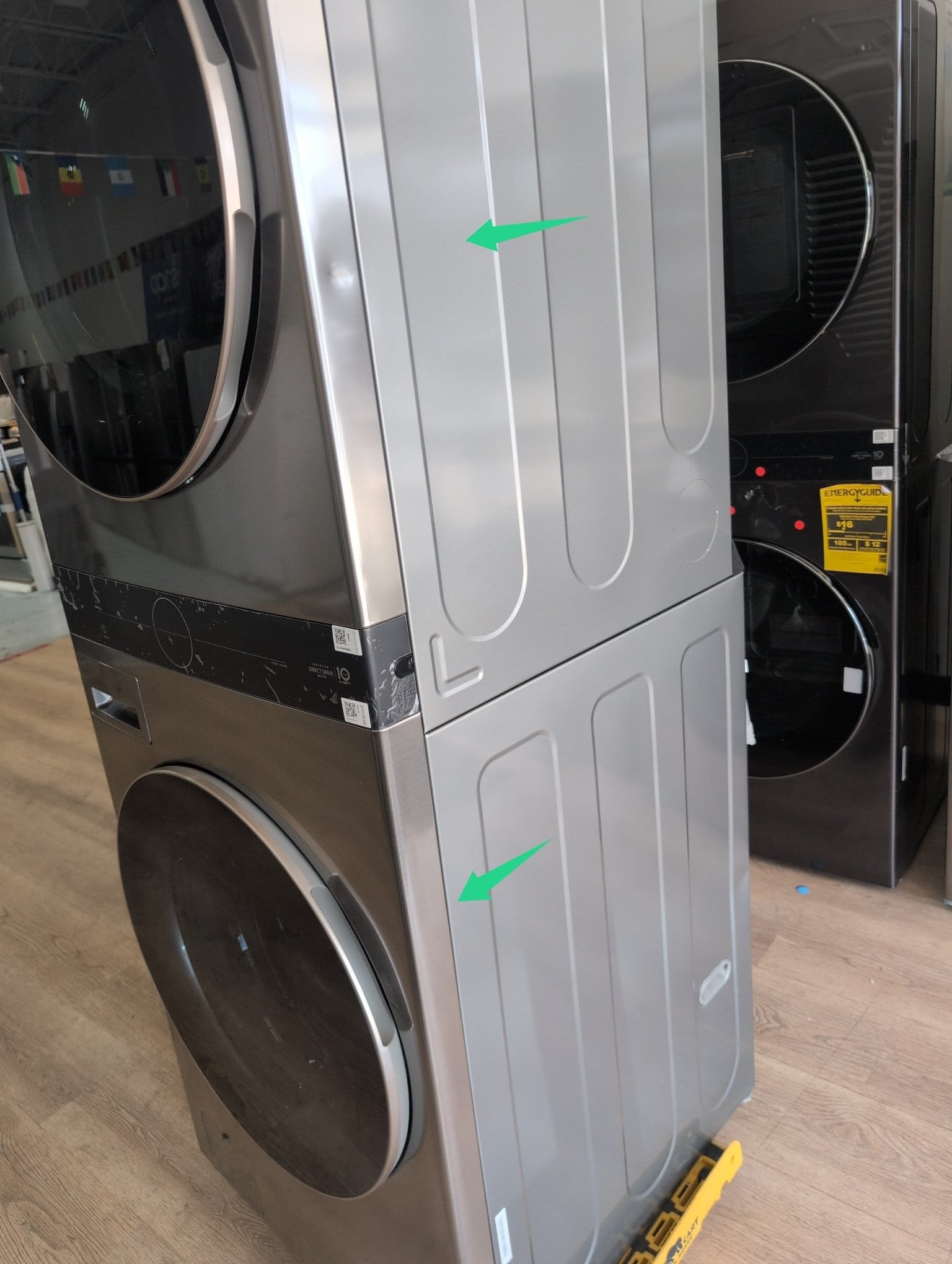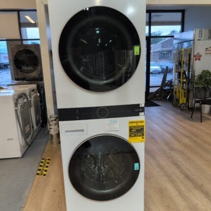 This LG 27-inch front load washer and dryer tower in graphite-style finish is a smart, space-saving laundry solution for homes, apartments, townhomes, and rental properties in the Nashville and Middle Tennessee area that want modern styling and full-size performance in a smaller footprint. The stacked single-unit design combines a large-capacity front load washer on the bottom with a powerful electric dryer on top, so you get the functionality of a traditional side-by-side pair while fitting into tighter laundry closets, hallways, and utility rooms. The washer provides multiple wash cycles and options for everyday loads, delicates, activewear, bulky items, and more, along with high spin speeds to remove excess water and help shorten drying times. The matching dryer offers sensor drying, timed cycles, and temperature settings to help prevent overdrying and protect fabrics, with a roomy drum that can handle family-size loads, towels, and bedding. A central control panel placed between the washer and dryer keeps key settings within easy reach, and LG smart features (on select configurations) can support app connectivity for cycle status, alerts, and basic remote functions. With its sleek dark finish, stacked design, and convenient controls, this LG laundry tower is a practical upgrade for busy families, landlords, and homeowners across the Nashville area who need efficient, modern laundry in a compact space without sacrificing capacity