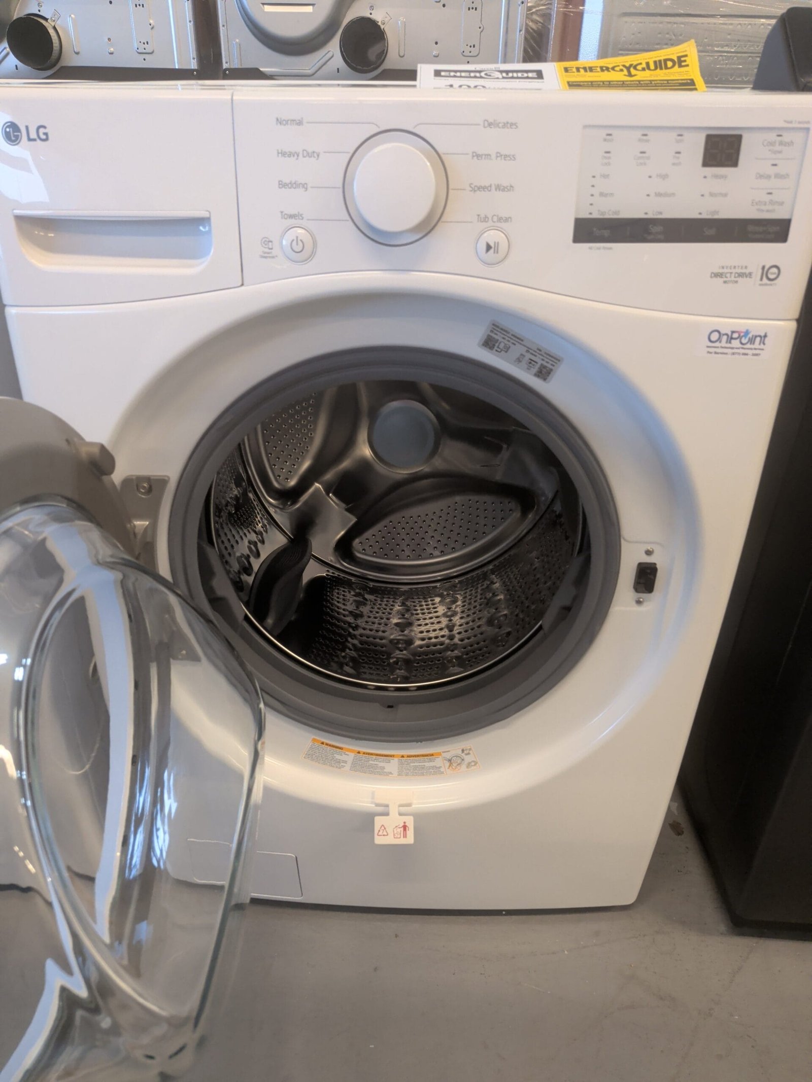 The Inverter Direct Drive motor with a 10‑year limited warranty, TrueBalance anti‑vibration system, and LoDecibel quiet operation make this washer a good fit for main‑floor laundries, townhomes, and apartments in the Nashville area where noise and reliability matter. It is ENERGY STAR certified and CEE Tier 2 rated, using significantly less water and energy than older top‑loaders, and includes conveniences like a 4‑tray dispenser (prewash, main wash with liquid cup, bleach, softener), LED display with Dial‑A‑Cycle controls, end‑of‑cycle signal, LoadSense, and SmartDiagnosis for quick troubleshooting help if issues come up. With its approximately 39 inch height, 30 1/4 inch depth, clean white finish, and stackable design that pairs with the matching DLE3400W electric or DLG3401W gas dryers, this LG front‑load washer is a practical, value‑focused choice for Nashville‑area families, landlords, and light‑duty commercial settings that need dependable, efficient laundry performance.