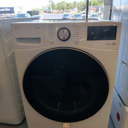 This 27-inch, 4.5 cu. ft. ultra large capacity smart front load washer in white is a great choice for homes and rental properties in the Nashville and Middle Tennessee area that want powerful cleaning, modern features, and stackable flexibility in a standard-width footprint. TurboWash 360° technology uses five powerful jets to spray clothes from multiple angles, helping you deep clean big loads in under about 30 minutes while still saving time and water. Built-in intelligence with AI DD fabric sensing can help select optimal wash settings based on load weight and fabric type, and Smart Pairing can send the right drying cycle to a compatible LG dryer so you do not have to guess. Steam technology with the Allergiene cycle uses high-temperature steam to help remove pet dander and dust, while additional cycles like Sanitary, Bright Whites, Bedding, Delicates, Speed Wash, and Towels give you targeted care options for family laundry. Features such as ColdWash for better cold-water performance, SenseClean load sensing, up to 1,300 RPM spin speed, ENERGY STAR efficiency, and Wi‑Fi connectivity with the ThinQ app make this washer efficient and convenient for everyday use. With its closet-depth design, tempered glass door, stackable compatibility with matching LG dryers, and strong feature set, this LG front load washer is a smart upgrade for busy Nashville households, small laundry rooms, and higher-end rental units across the Middle Tennessee area