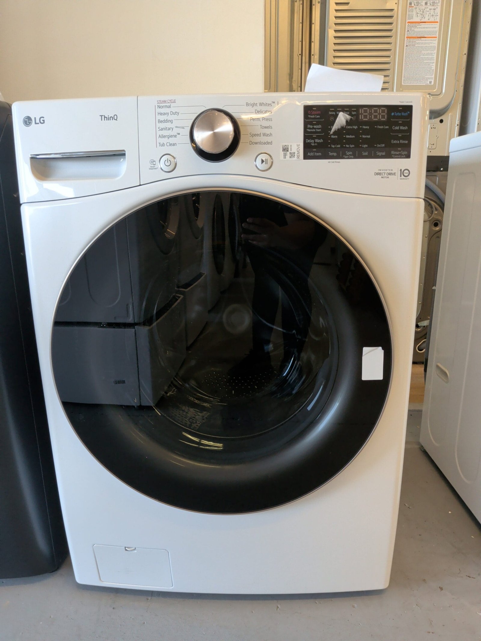 This 27-inch, 4.5 cu. ft. ultra large capacity smart front load washer in white is a great choice for homes and rental properties in the Nashville and Middle Tennessee area that want powerful cleaning, modern features, and stackable flexibility in a standard-width footprint. TurboWash 360° technology uses five powerful jets to spray clothes from multiple angles, helping you deep clean big loads in under about 30 minutes while still saving time and water. Built-in intelligence with AI DD fabric sensing can help select optimal wash settings based on load weight and fabric type, and Smart Pairing can send the right drying cycle to a compatible LG dryer so you do not have to guess. Steam technology with the Allergiene cycle uses high-temperature steam to help remove pet dander and dust, while additional cycles like Sanitary, Bright Whites, Bedding, Delicates, Speed Wash, and Towels give you targeted care options for family laundry. Features such as ColdWash for better cold-water performance, SenseClean load sensing, up to 1,300 RPM spin speed, ENERGY STAR efficiency, and Wi‑Fi connectivity with the ThinQ app make this washer efficient and convenient for everyday use. With its closet-depth design, tempered glass door, stackable compatibility with matching LG dryers, and strong feature set, this LG front load washer is a smart upgrade for busy Nashville households, small laundry rooms, and higher-end rental units across the Middle Tennessee area