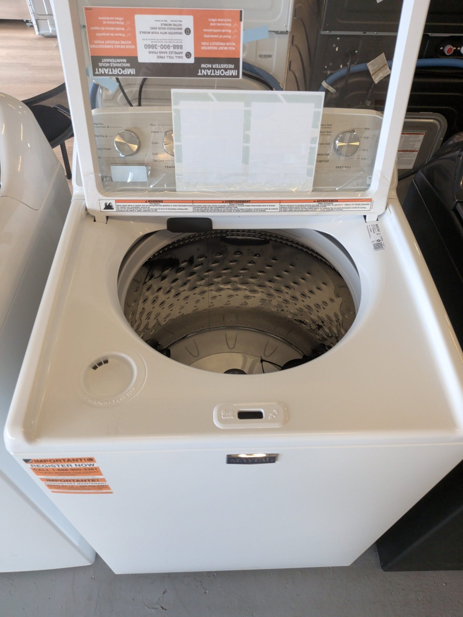 This appliance does not include store warranty. All coverage is provided directly through the manufacturer’s warranty from day one of ownership, according to Maytag’s terms and conditions. Warranty service must be requested through Maytag or their authorized service network; cosmetic issues such as dents, scratches, and pre-existing damage are not covered by the manufacturer warranty