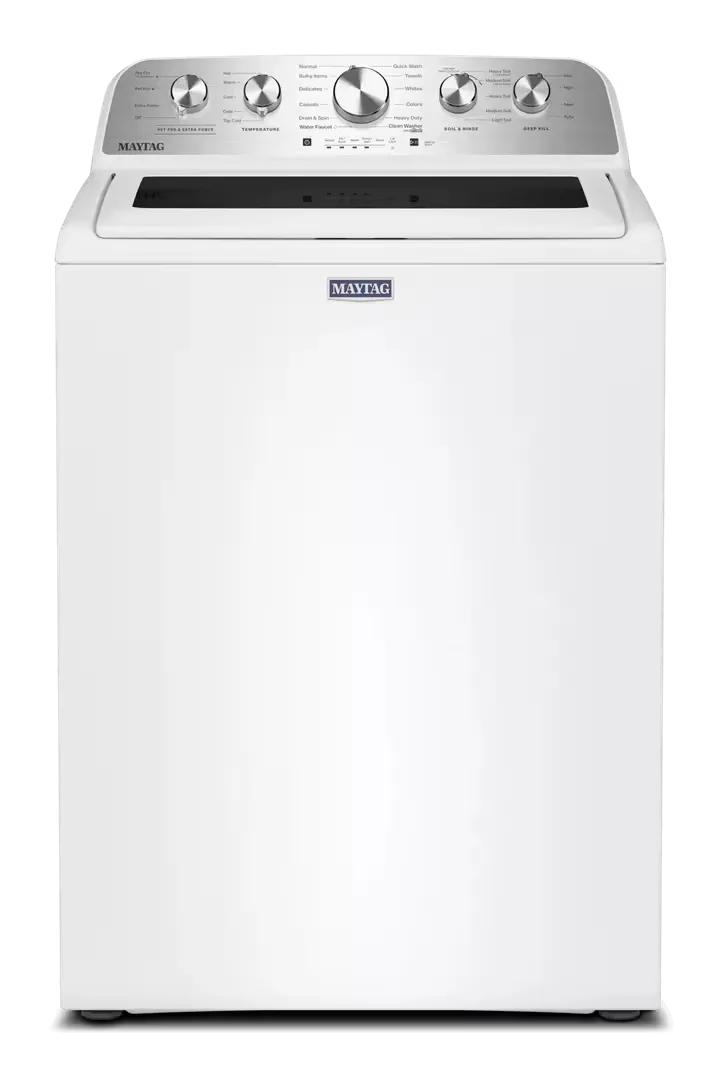This 27-inch, 4.8 cu. ft. Maytag Pet Pro top load washer with impeller in white is a great choice for pet owners and families in the Nashville and Middle Tennessee area who need a large-capacity washer that can handle hair, dirt, and everyday stains. The Pet Pro Option uses a built-in Pet Pro filter and specially designed wash action to lift, capture, and trap pet hair, so you can actually see hair collected in the filter instead of left on clothes or in the drum. A Power impeller with robust wash motions and the Extra Power button help boost stain fighting on any cycle, while the Deep Fill option lets you choose deeper water levels (Auto, Medium, High, Max) for bulky loads or heavily soiled items. With 11 wash cycles—including Normal, Heavy Duty, Bulky Items, Towels, Whites, Colors, Delicates, Casuals, Drain & Spin, Quick Wash, and Clean Washer with affresh—plus options like Extra Rinse, Pet Pro, Pet Pro + Extra Power, and built-in water faucet for pre-rinsing or soaking, this washer is flexible enough for everyday laundry and tough messes. A stainless steel wash basket, automatic load-size sensing, rear-console knob controls with cycle indicator lights, slow-close glass lid, and Advanced Vibration Control make this Maytag washer a durable, user-friendly upgrade for busy homes and rental properties across the Nashville area